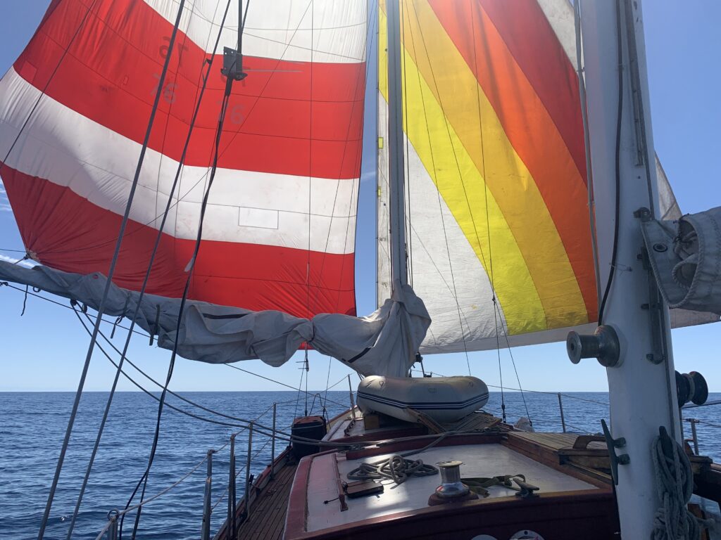 - Mainsail, Genoa, Asymmetrical Spinnaker, Mizzen, 2 storm jibs